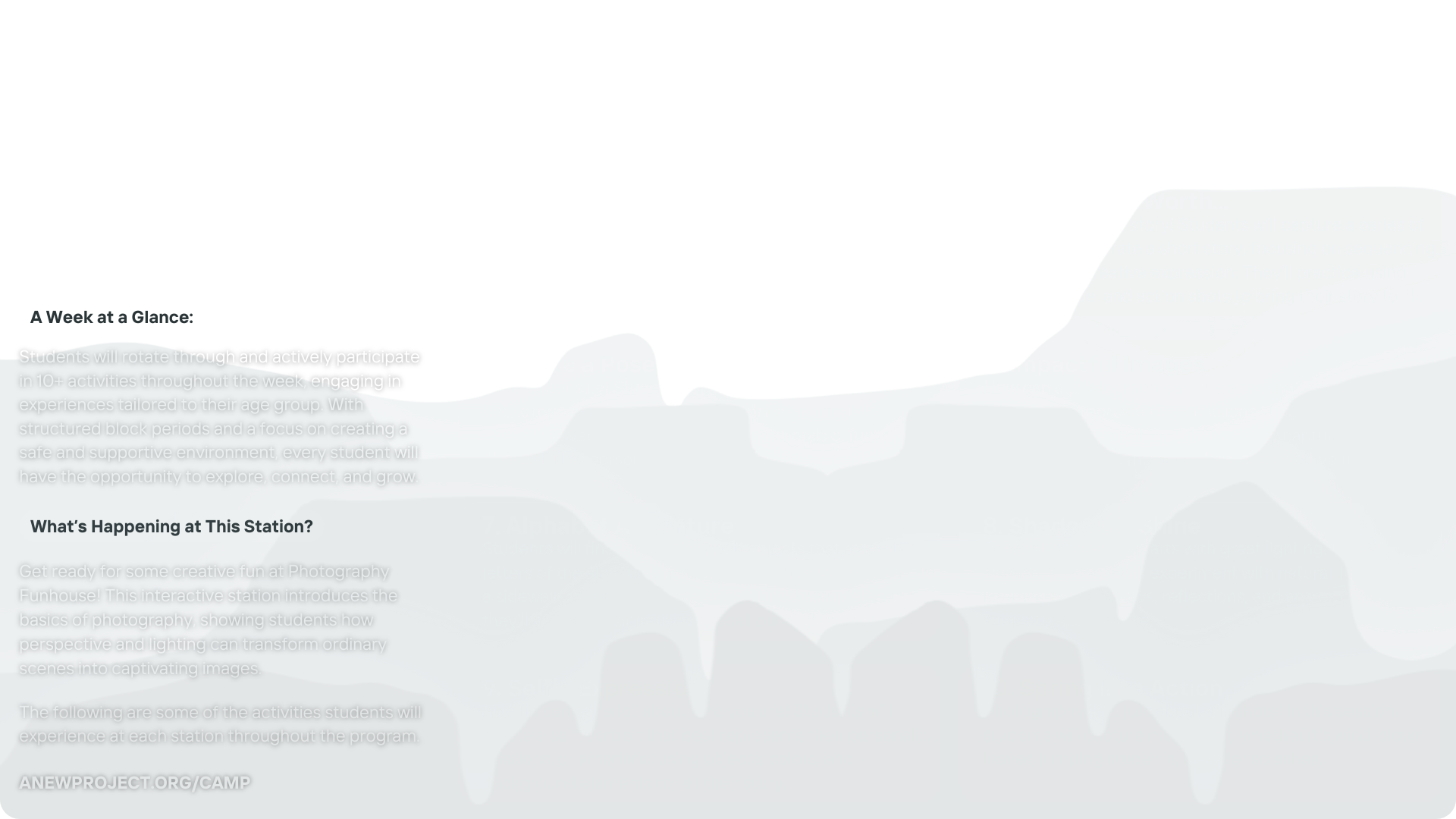 The ANEW Project offers students access to over 65+ activities and lessons within engaging programming sessions. Participants will have the opportunity to make new friends, explore exciting activities, and build valuable skills.