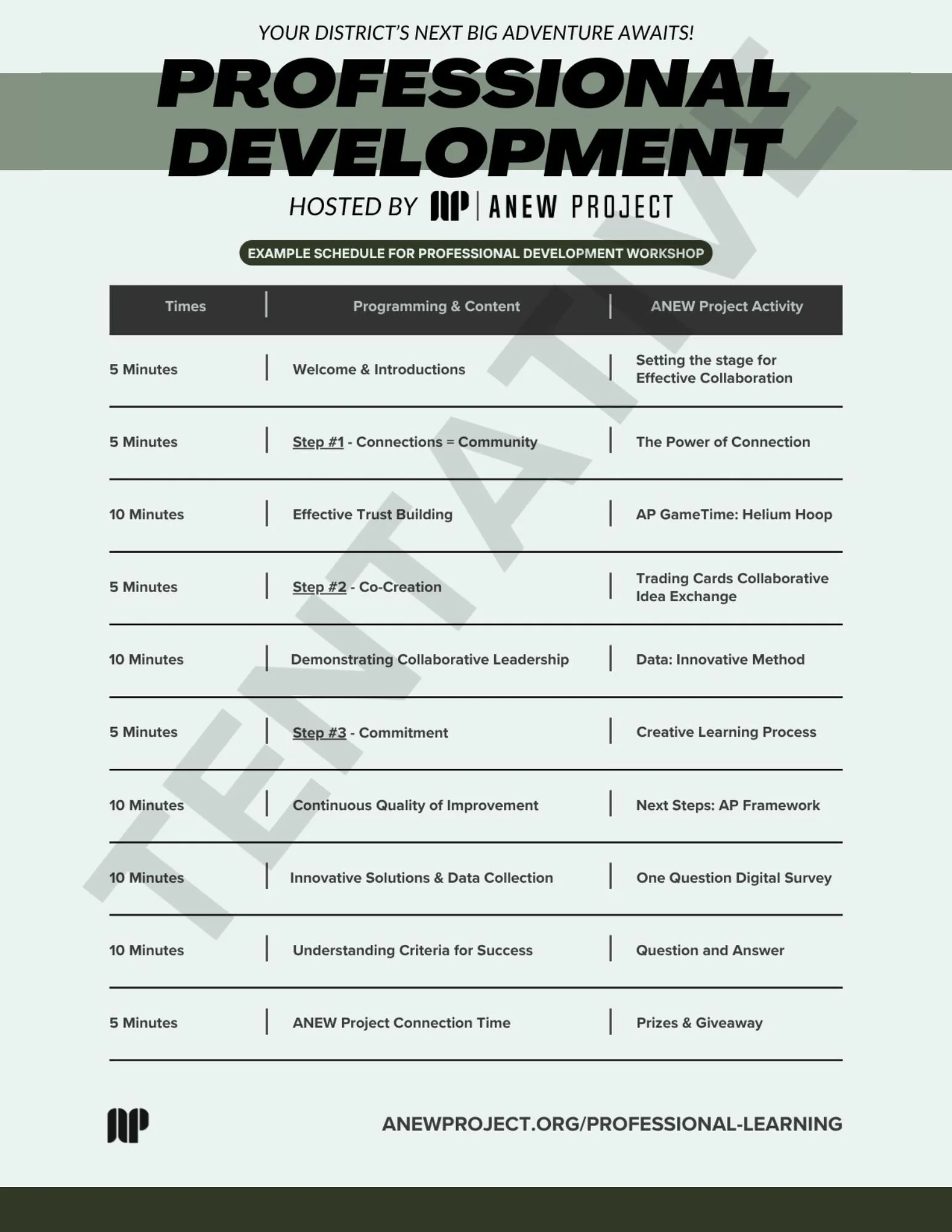 Partner with the ANEW Project for personalized support and innovative strategies around engagement, creating the right conditions, Data Collection, and instructional sustainability.